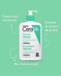 El Limpiador Facial Espumoso CeraVe, desarrollado con dermatólogos, limpia profundamente, busca eliminar el exceso de grasa sin dañar la barrera cutánea. Ideal para pieles normales a grasas, su fórmula con ceramidas, ácido hialurónico y niacinamida restaura la barrera natural y retiene la humedad, dejando la piel fresca y equilibrada.