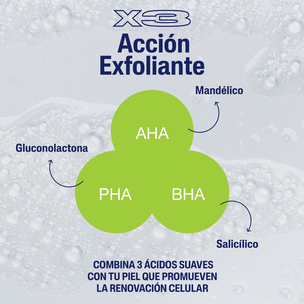 - Exfoliación química diaria para piel sensible. Elimina impurezas y células muertas sin irritar ni alterar la barrera cutánea, gracias a su fórmula sin abrasivos físicos