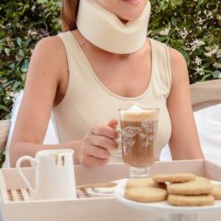 Brinda soporte y calor terapéutico al cuello, descargando el peso de la cabeza. Indicado para tratar dolencias de los músculos del cuello. Mantiene el cuello en posición neutra y limita moderadamente los movimientos de rotación, flexión y extensión. Sirve como complemento en la utilización de collares de inmovilización durante el período de sueño. Cuenta con una funda lavable, que se coloca en la zona del contacto con el mentón. Su sistema de cierre permite regular la compresión y adaptarse a la anatomía de cada usuario.