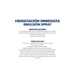 La nueva emulsión corporal Hidratación Inmediata en formato spray continuo 360°, es de fácil aplicación y rápida absorción en menos de 1 minuto.