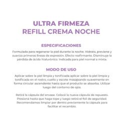 La Dermaglós Ultra Firmeza Crema de Noche Repuesto está diseñada para pieles normales a mixtas, su fórmula avanzada hidrata en profundidad, reafirma y previene las primeras líneas de expresión gracias a su combinación de Ácido Hialurónico, Niacinamida, Provitamina B5 y Vitamina E.