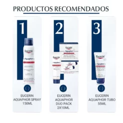 MODO DE USO 1) Aplicar Eucerin Aquaphor Pomada reparadora con la frecuencia que sea necesaria en las áreas afectadas 2) No utilizar sobre heridas abiertas, sangrantes o húmedas