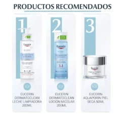1) Limpiar el rostro con Eucerin DermatoCLEAN Crema/Leche Facial Limpiadora para eliminar todo el maquillaje y las impurezas