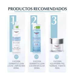 1) Limpiar el rostro con Eucerin DermatoCLEAN Crema/Leche Facial Limpiadora para eliminar todo el maquillaje y las impurezas