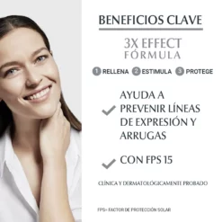 Eucerin Hyaluron-Filler 3x Effect Contorno de Ojos FPS15 ofrece protección contra los rayos UVB y UVA para evitar el envejecimiento prematuro de la piel y la profundización de las arrugas en el área de los ojos.