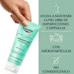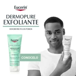 Eucerin DermoPURE Oil Control Exfoliante, libre de aceites con Ácido Láctico, elimina impurezas sin resecar la piel, apto para el rostro y cuerpo. La acción exfoliante de las micropartículas naturales actúa contra las células muertas de la piel, una de las principales causas de los puntos negros y granitos. Limpia suavemente y remueve el maquillaje. Ayuda a destapar poros, eliminar impurezas y reducir puntos negros, la textura de la piel a simple vista limpia y refinada. Este producto ha sido formulado específicamente para piel grasa y propensa a imperfecciones, la cual no esta bajo medicación.