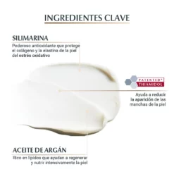 Su fórmula única proporciona múltiples beneficios antienvejecimiento. La innovadora mezcla de Eucerin de Ácido Hialurónico de alto y bajo peso molecular ayuda a rellenar visiblemente las arrugas, mientras que el Dexpantenol favorece el proceso de reparación natural de la piel durante la noche. El nuevo Complejo Colágeno-Elastina, una potente combinación de Arctiina y Creatina, reenergiza la producción de colágeno y aumenta la elasticidad de la piel. El Thiamidol patentado por Eucerin reduce la aparición de manchas de la edad. La piel se siente firme y suave y luce fresca y radiante.