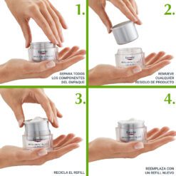 Ayuda a contrarrestar el proceso de envejecimiento natural. Para una piel visiblemente más lisa, radiante y joven. Este repuesto de Hyaluron-Filler +3x Effect Noche se puede utilizar en combinación con cualquier envase de cuidado facial de Eucerin. Se estima que los repuestos ahorran más de 16 toneladas de plástico al año*.