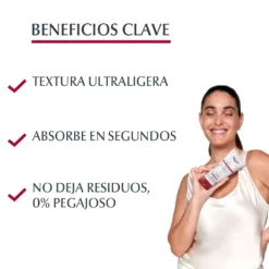 Su fórmula no grasa de rápida absorción se siente ligera en la piel ya que no deja residuos.