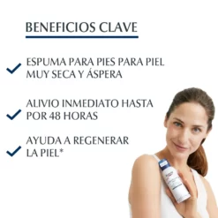 Una espuma ultraligera probada clínicamente con un 10% de urea para hidratar intensamente la piel gruesa de los pies y revitalizar y fomentar la regeneración de la piel. Se absorbe rápidamente y deja una sensación no grasa y no pegajosa.
