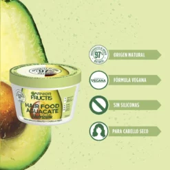 ¡Alimenta tu pelo! Toda la naturalidad de tu mascarilla casera, con la eficacia de Fructis. Fórmulado con aceite de palta, ayuda a darle vida al pelo seco, aportándole la nutrición que necesita.
