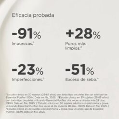 Isdinceutics Essential Purifier es una espuma limpiadora facial de textura extra densa que elimina hasta el 91% de las impurezas de la piel. Diseñada para uso diario, limpia profundamente sin comprometer la hidratación natural del rostro, ayudando a remover el exceso de sebo, sudor, polución y restos de maquillaje o protector solar.
