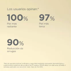 Mejora la luminosidad de la piel, promueve la recuperación de la elasticidad, aportando una mayor hidratación y un aspecto visiblemente rejuvenecido.