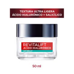 Conocé el nuevo Gel Crema Revitalift Ácido Hialurónico: una crema hidratante con textura ultra ligera, refrescante y de rápida absorción. Su fórmula resulta en un poderoso dúo, al combinar Ácido Hialurónico, activo antiedad que hidrata intensamente la piel, rellenando líneas de expresión; y Ácido Salicílico, activo anti-brillo que controla el sebo y reduce la visibilidad de los poros. Ideal para pieles mixtas a grasas.