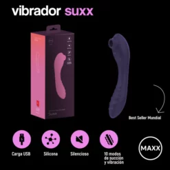 Funciona como vibrador, funciona como succionador y lo mas importante de todo, funciona como vibrador y succionador a la vez. El Juguete Sexual Maxx Play Vibrador y Succionador Suxx con 10 modos de succion y vibración, batería USB recargable para descubrir y alimentar nuevas fantasias.