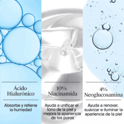 Mantén una piel suave y renovada con nuestro serum con 10 % de niacinamida, ácido hialurónico y neoglucosamina. Este poderoso serum hidratante de acción múltiple exfolia para refinar el aspecto de los poros y mejorar el aspecto de la piel con un tono más uniforme. Además, ayuda a fortalecer la barrera de la piel mientras mejora visiblemente la textura de la piel opaca e irregular.