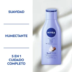 1) Aplicar NIVEA 5 en 1 Soft Milk Crema corporal diariamente en todo el cuerpo