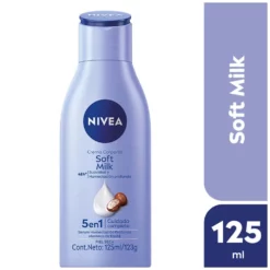 La Crema corporal Soft Milk 5 en 1 de NIVEA nutre la piel desde la primera aplicación gracias a su serum de humectación profunda y a su ingrediente principal: Manteca de Karité. Posee 5 beneficios en 1: 48 horas de humectación profunda, brinda un cuidado indulgente, rápida absorción, deja suave la piel y visiblemente más saludable. Recomendada para pieles secas.