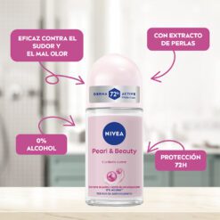 El Desodorante antitranspirante femenino Nivea Pearl & Beauty Roll On brinda una máxima protección durante 72 horas. Gracias a su innovadora fórmula con Extracto de Perlas y Arcilla Natural, las axilas lucirán suaves y con un tono parejo. Está probado en todo tipo de pieles, es ideal para pieles normales.