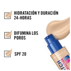Es una base líquida que utiliza tecnología de tonos inteligentes para lograr un tono de aspecto natural, El complejo humectante de 24 horas deja la piel con una sensación de hidratación y revitalización, Los poderes de enfoque suave ayudan a reducir las imperfecciones y ocultar las ojeras, Aplicación ultrasuave para una cobertura media, Protección FPS 20