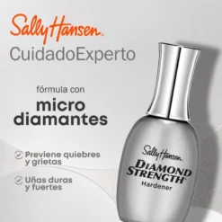 Cuando tus uñas necesitan un refuerzo, el endurecedor de uñas Diamond Strength™ de Sally Hansen las protege, dejándolas notablemente más duras y fuertes. Nuestra fórmula con micro diamantes y titanio se adhiere al instante para sellar las capas, eliminar la escamación y fortalecer uñas frágiles con su escudo protector.