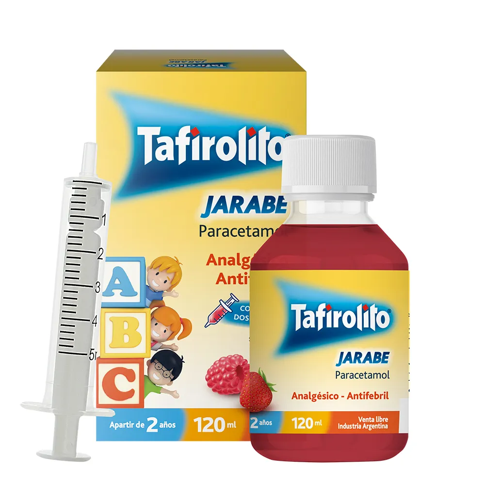 Dosificación. La dosis se ajustará por kilogramo de peso, siendo: 10mg/kg/dosis. (Dosis máxima: 60mg/kg/día). Como orientación se sugiere: 1 a 2 años, 5ml (1 jeringa); 2 a 4 años, 11-18kg: 6,5ml, 4 a 6 años, 18-24kg: 10ml (2 jeringas); 6 a 9 años, 24-30kg: 13ml; 9 a 12 años, 30-45kg: 15ml (3 jeringas; + de 12 años, + de 46kg: 21ml. Repetir la dosis cada 6 horas. La dosis se mide con la jeringa que acompaña esta presentación. Modo de uso: 1. abra la tapa de seguridad presionando hacia abajo y luego gire; 2. coloque el inserto en la boca del frasco (este paso debe ser realizado en el primer uso únicamente); 3. introduzca el pico de la jeringa en el orificio del inserto; 4. invierta el frasco y extraiga la cantidad de jarabe, según la dosificación, tirando el émbolo hacia atrás. Luego de utilizar, lavar la jeringa dosificadora con abundante agua.