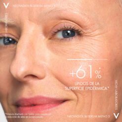 En la menopausia, los desequilibrios hormonales afectan visiblemente a tu piel. El descenso de los estrógenos y el aumento del cortisol intensifican los signos del envejecimiento de la piel. La potente combinación de Meno 5 BI – Sérum combate el fotoenvejecimiento, la flacidez, las arrugas y aumenta los lípidos en la epidermis además de iluminar la piel del rostro.